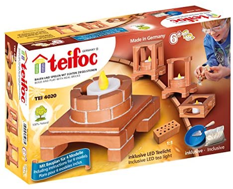 Build with real bricks. Teifoc stimulates creativity with natural materials. The cement is safe and soluble in water so that the bricks can be reused.